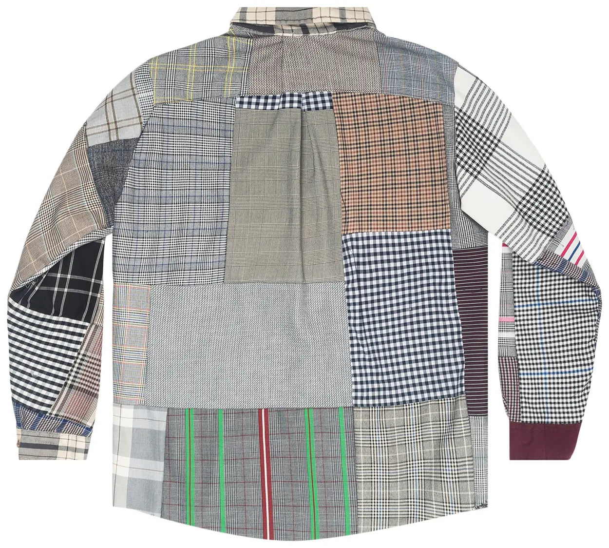 [Grey] Patchwork Stitched Pattern Face Button Up