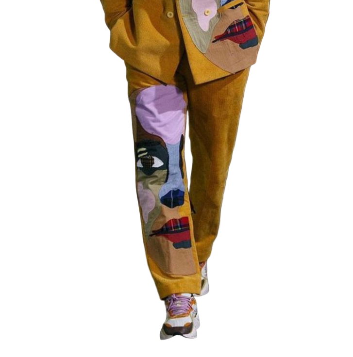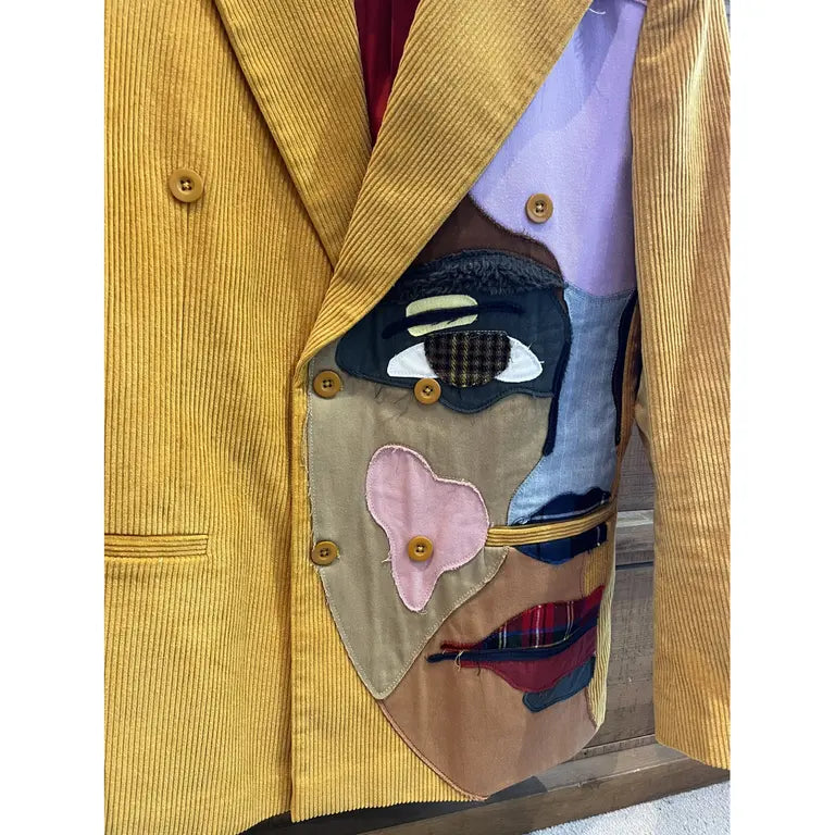 [Yellow] Corduroy Faces Graphic Print Suit Top